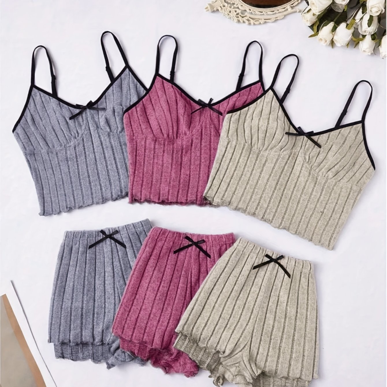 TEMU 부드럽고 피부 친화적인 원단으로 만들어진 잠옷, 반바지, 탱크탑 3점 세트로 편안하고 캐주얼한 홈웨어로 착용할 수 있습니다.|반바지|잠옷|파자마
