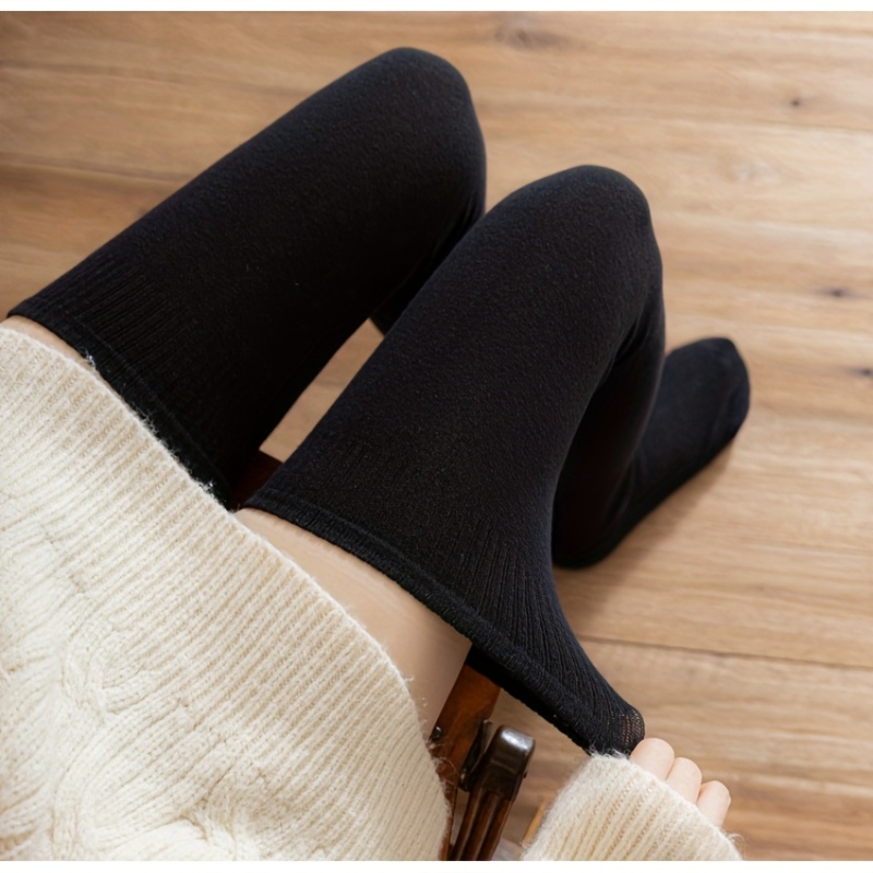 TEMU 여성 플러스 사이즈 기모 양말 세트. 겨울철 따뜻함을 위해 설계되었으며 두꺼운 쿠션으로 가슴까지 올라오는 긴 양말입니다. 이 세련되고 단색의 양말은 아치 및 뒤꿈치 지지력을 제공하며 캐주얼하고 포멀한 모든 행사에 적합합니다.|빅사이즈