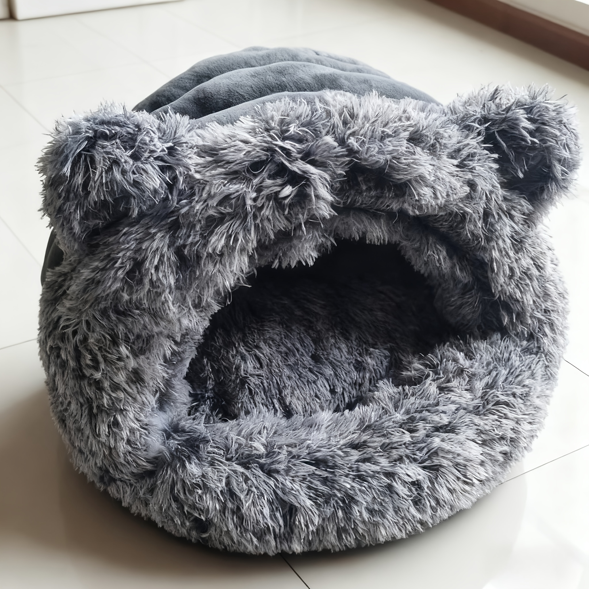 TEMU 1개 겨울 따뜻한 플리스 고양이 동굴 - 방풍 360° 보온 편안함, 플러시 안감이 있는 조립되지 않은 애완 동물 침대, 소형견 및 중형견용 아늑한 실내 은신처, 클래식 스타일 폴리에스터 섬유, 클래식 디자인, 튼튼한 구조, 플리스 안감
