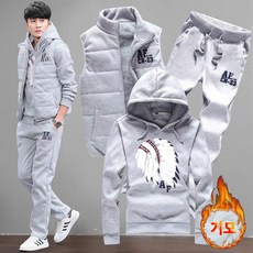가을겨울 방한복 남자 트레이닝복 3종세트 따뜻한 후드티 면조끼 조거팬츠 상하의