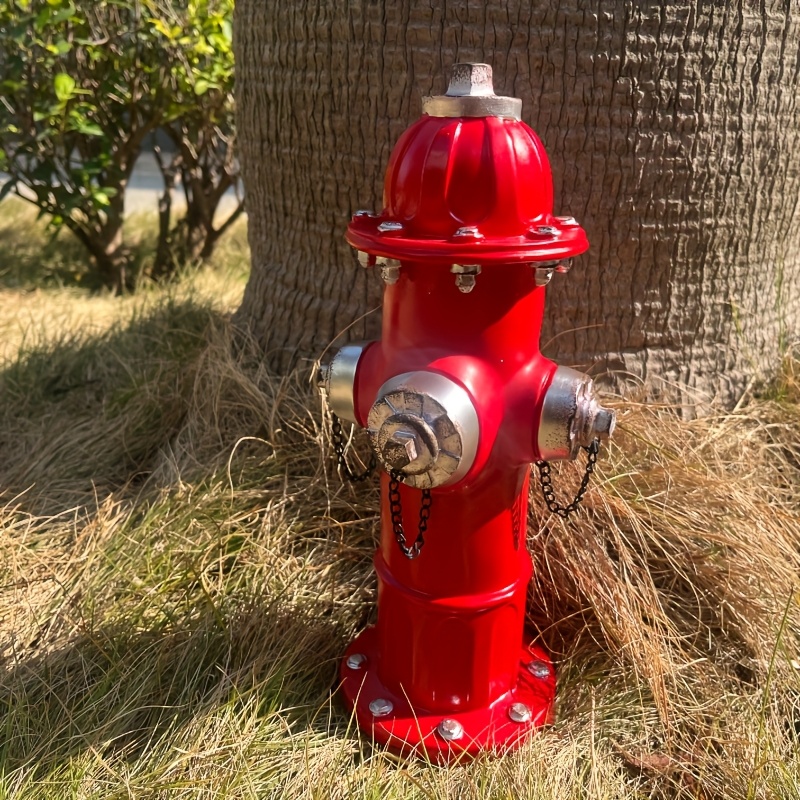 TEMU 1개 생동감 있는 레드 레진 소방관 조각상, 크롬 도금 악센트 및 금속 체인 - 정원, 파티오, 잔디를 위한 독립형 야외 장식 - 이상적인 크리스마스 선물