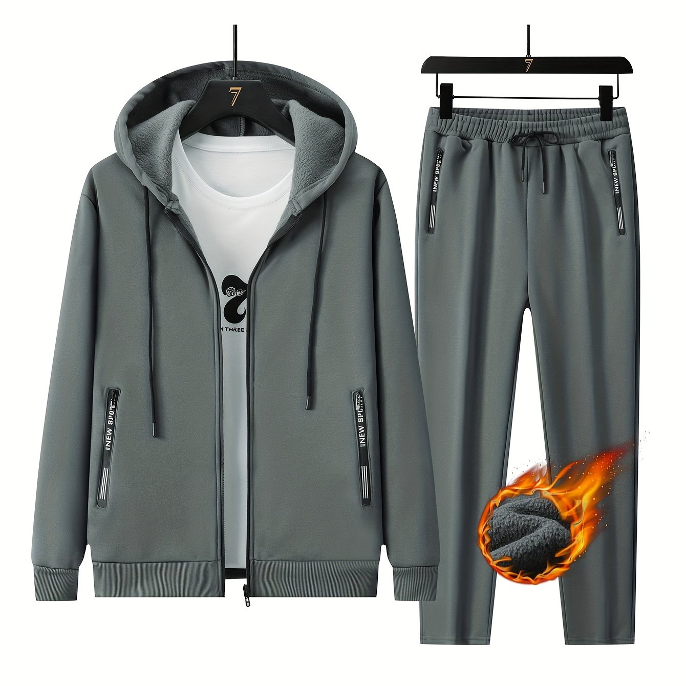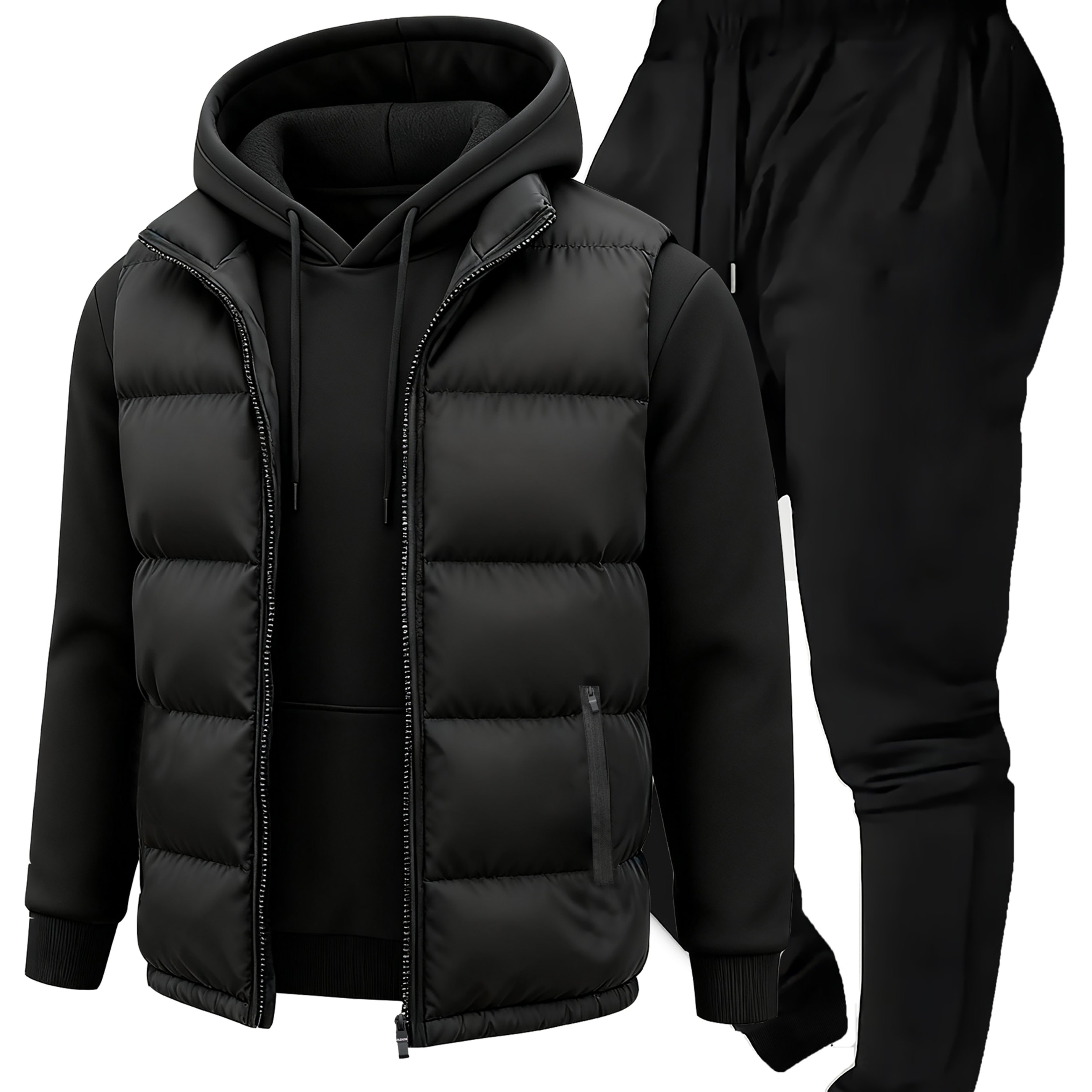 TEMU 남성용 겨울 스포츠 슈트 - 후드 재킷과 바지의 캐주얼 투피스 세트, 디자인, 지퍼 클로저, 레귤러 핏, 야외 활동에 이상적, 겨울 스포츠 의상| 패턴|지퍼 재킷