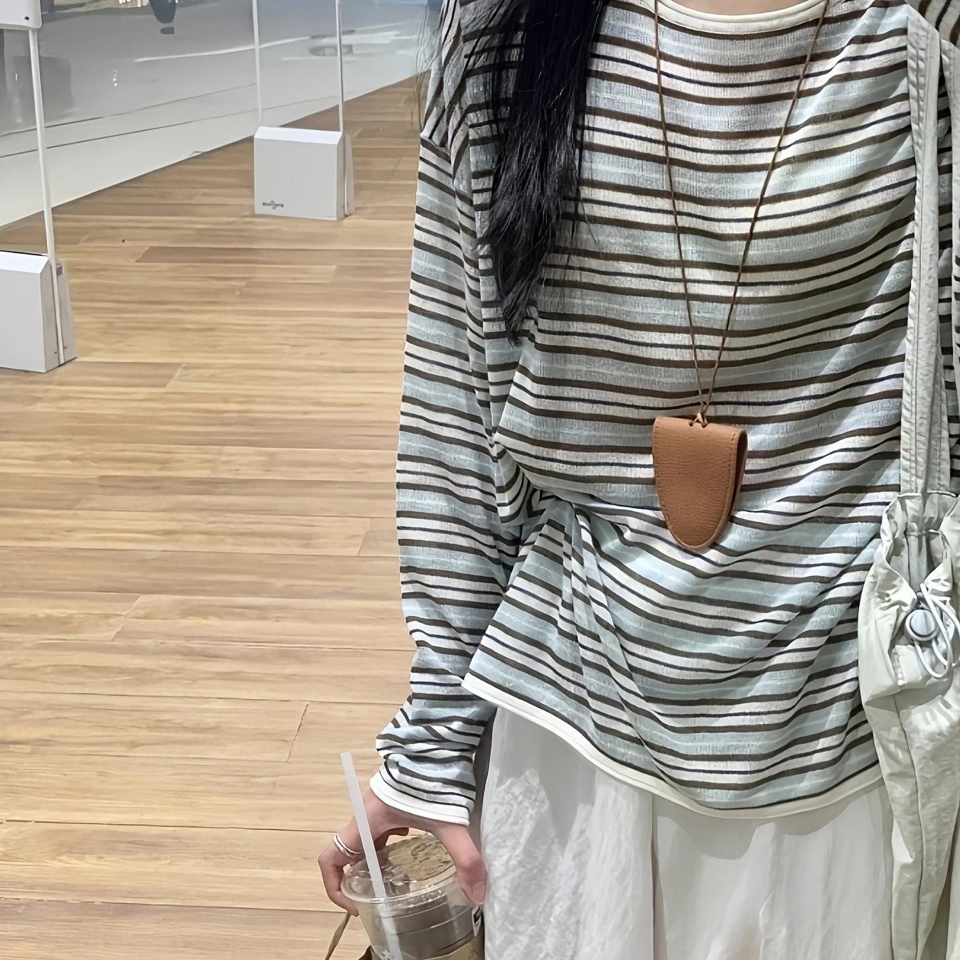 TEMU 한국식 여름 긴팔 티셔츠, 가벼운 컬러블록 디자인, 루즈핏, 패셔너블 캐주얼 라운드넥, 부드러운 소재, 편안한 착용감, 데이트, 출근, 발렌타인데이에 완벽한 아이템